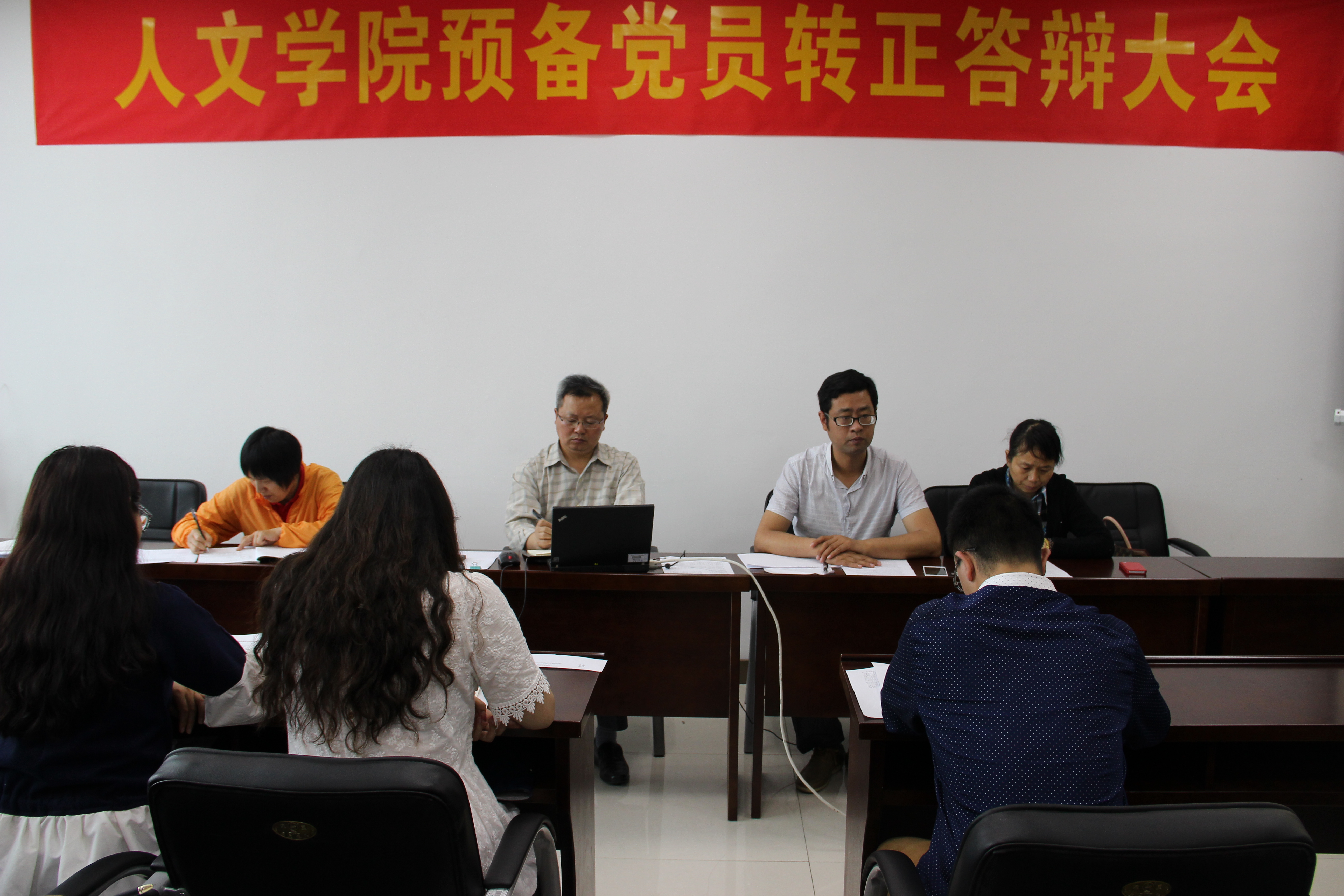 参加此次转正答辩大会的共有9名员工预备党员,分四个环节进行:一是自我陈述环节。预备党员对照党员标准汇报自己在预备期内的思想、学习、工作、自身存在的问题以及整改情况。二是理论问答环节。预备党员根据事先抽取的党的基本理论知识题进行流利的回答。三是自由提问环节。答辩组成员就党员的义务、党员先锋模范作用的发挥情况以及转正后的打算等对预备党员提问,各位同学都做了诚恳细致的回答。四是小组评议环节。经答辩小组综合评议,9名预备党员全部获得通过。