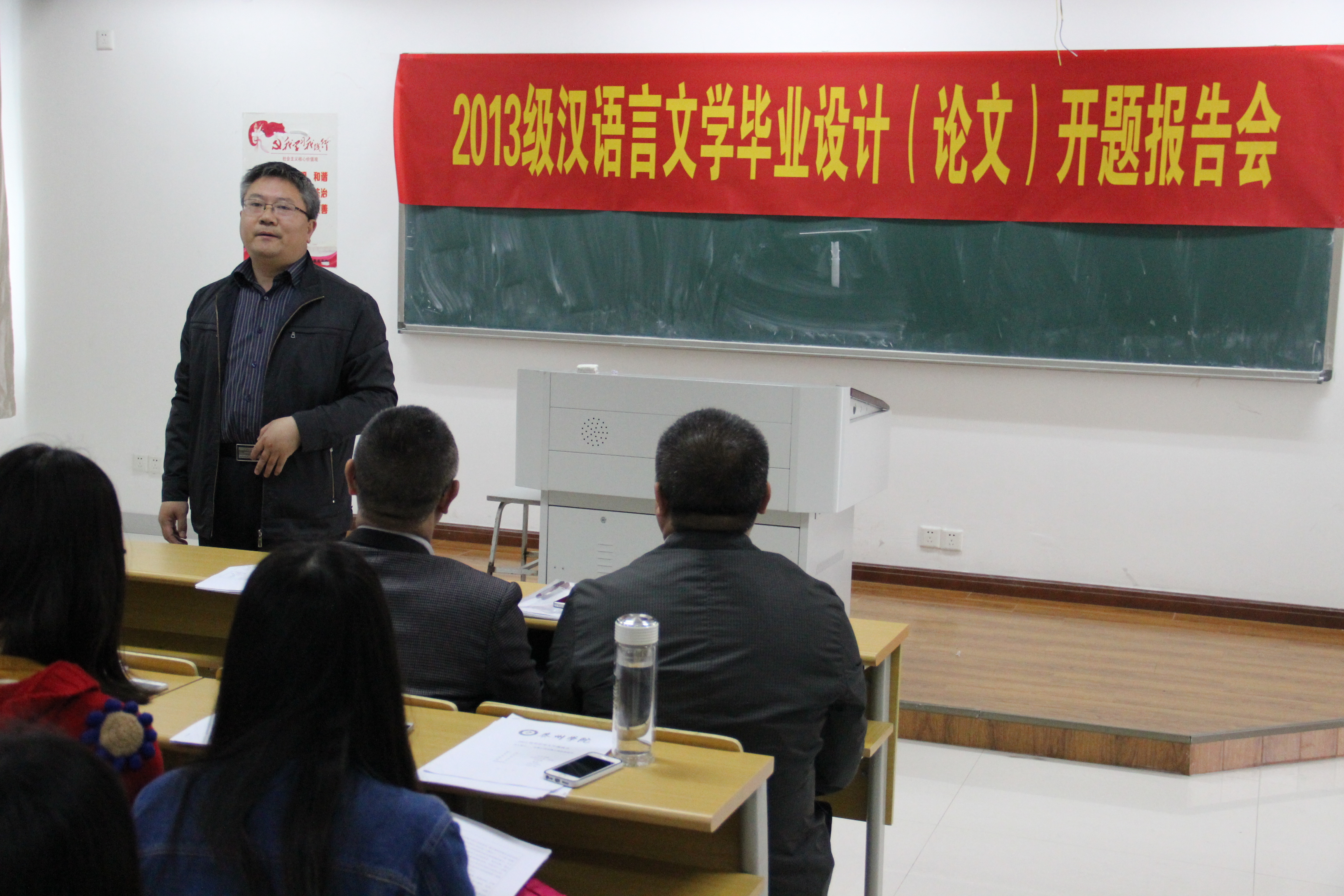 5月14日上午,英国正版365官方网站在教学楼1206教室举行了2017届汉语言文学专业毕业论文开题报告会,教务处领导出席并讲话。