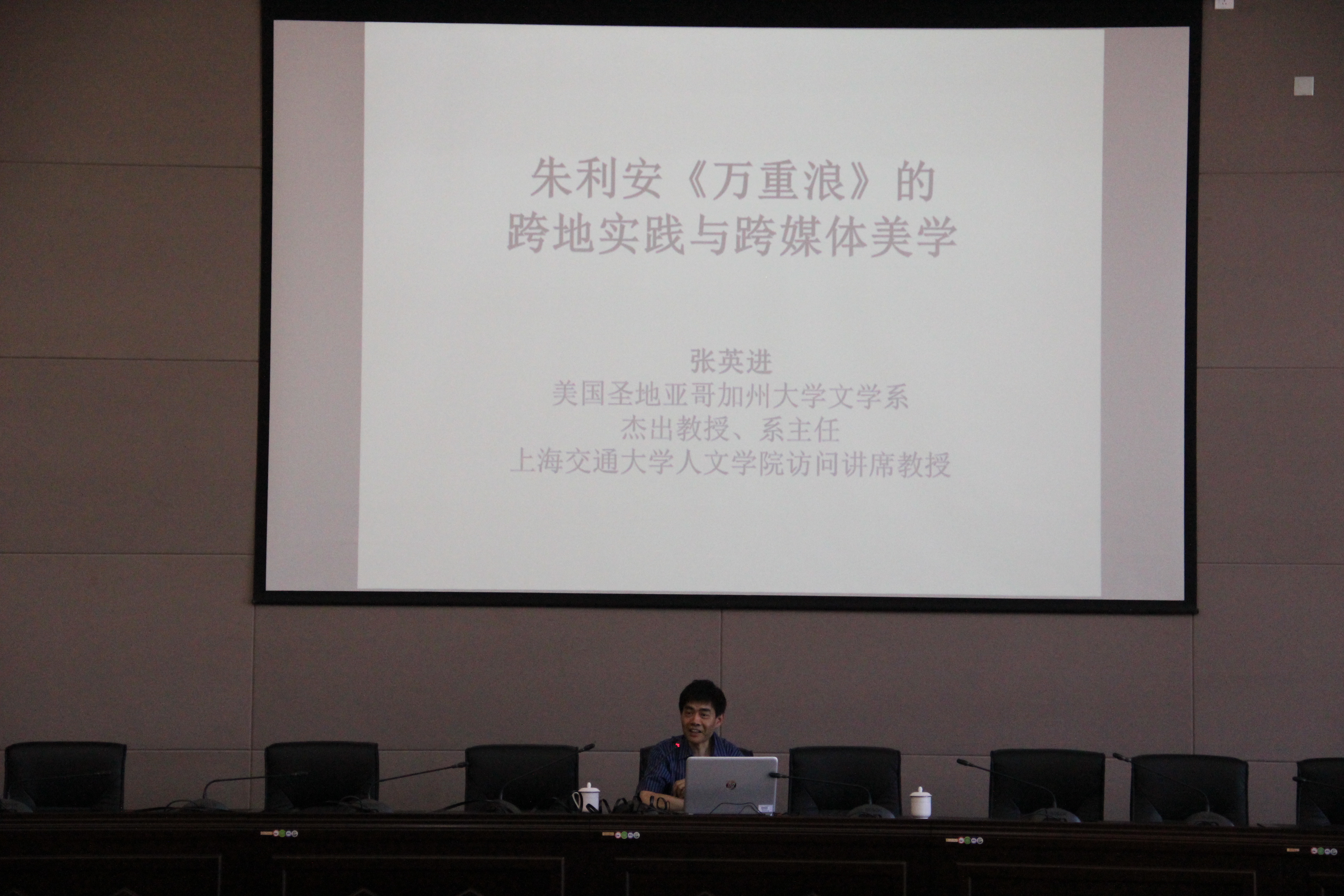 张英进教授以《朱利安<万重浪>的跨地性和跨媒体美学》为题,从英国艺术家萨克·朱立安导演的电影《万重浪》(2010)切入,通过启用不同的模式重塑妈祖传说和上海记忆,多种影像与声音不停流动,产生跨越不同媒体和类型(电影、摄影、影像专置、救援录像、书法、诗歌、绘画、明星表演等)的多层次、多时空的意义联想,剖析当代电影与视觉研究中新发展的跨地性与跨媒体现象,阐释其基于跨地比兴、跨媒体互动和移动观影呈现的动态美学特质。
