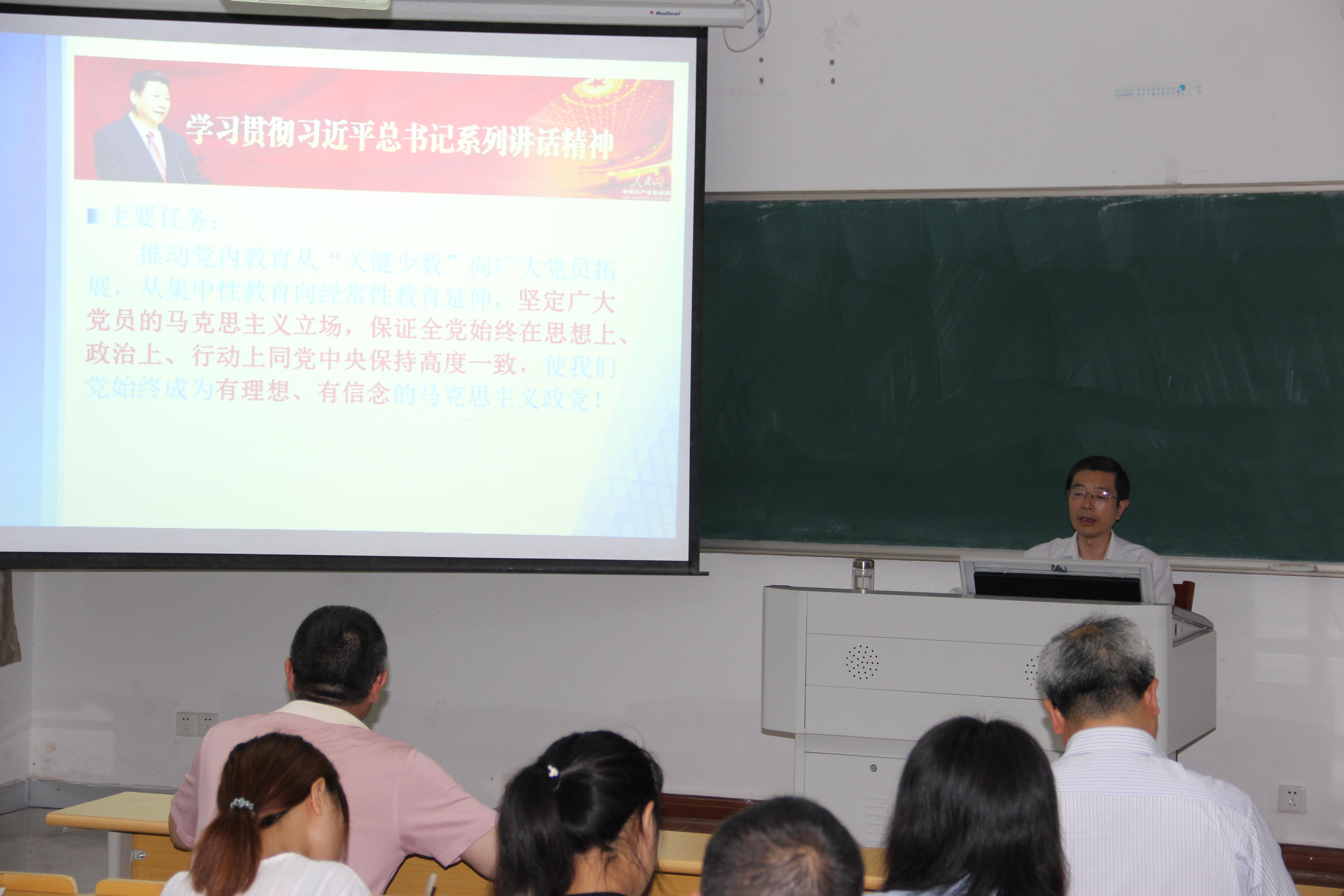 邓友祥围绕“‘两学一做’学习教育的主要任务和基本要求”、“习近平总书记系列讲话的理论定位、主要内容、核心要点、主题主线”、“系列讲话的学习实践要求”以及“以‘两学一做’为新动力,推进合格本科高校建设”等四个方面,讲授了党课。主题鲜明、条理清晰、内容丰富,既有较强的理论性,又紧密联系实际。