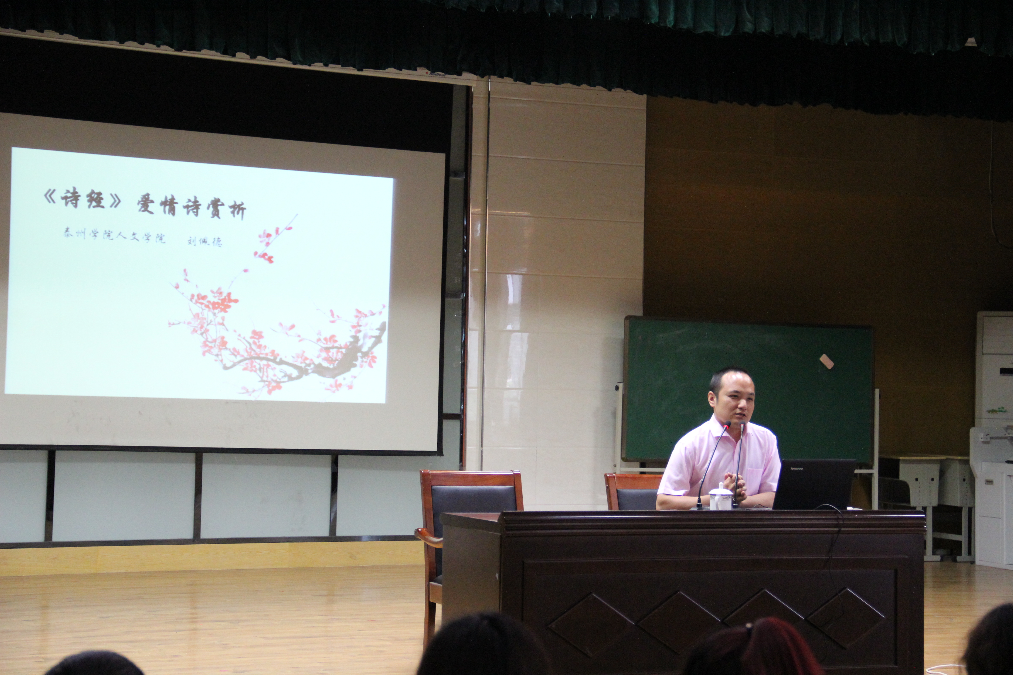 2016年6月28日上午,英国正版365官方网站刘佩德博士应邀前往泰州市姜堰区东桥中心小学,为该校教师发展学校第47期培训班作题为《〈诗经〉爱情诗赏析》的讲座。