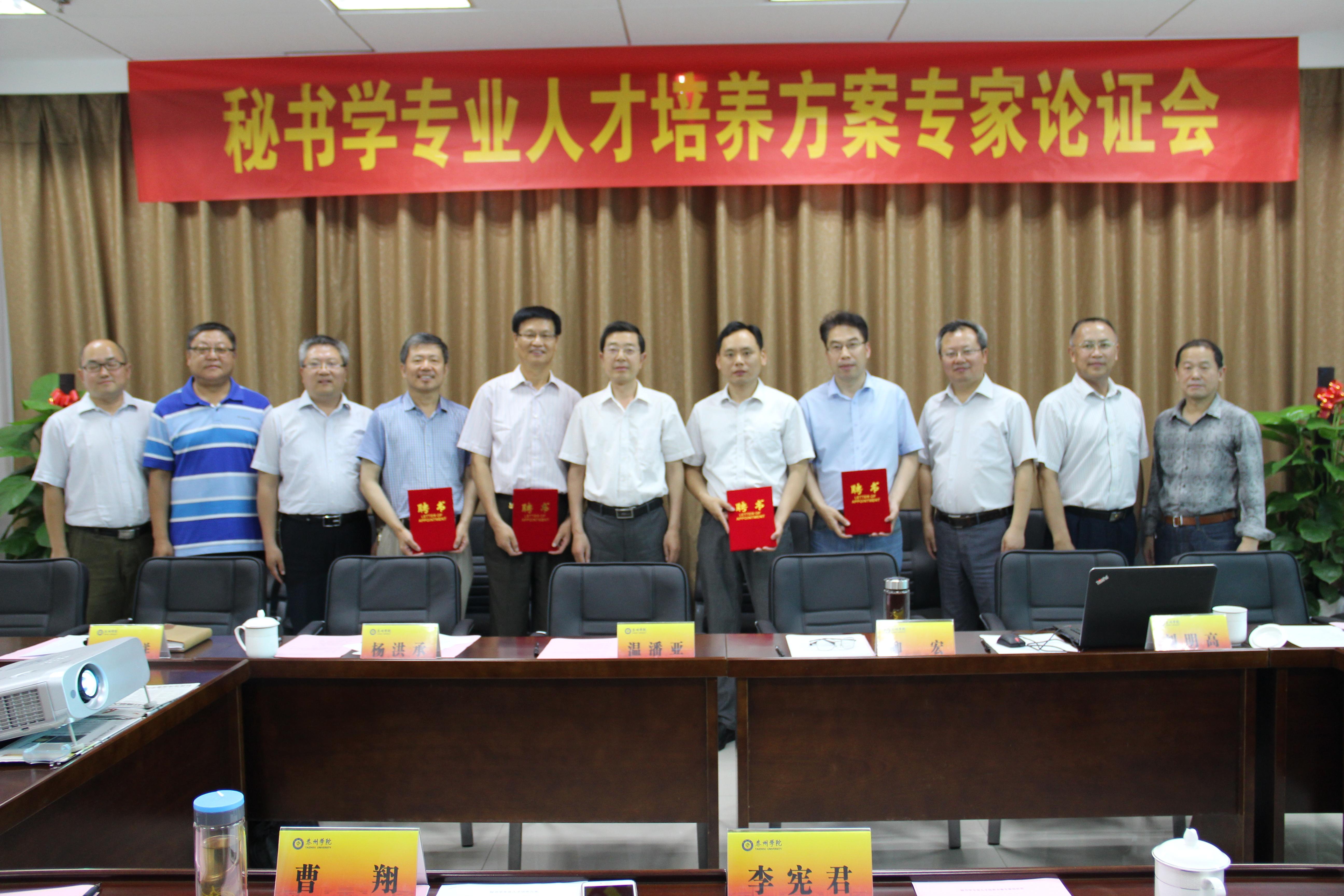 2017年6月9日下午,公司邀请来自南京师范大学、扬州大学、中共泰州市委、泰州报业传媒集团及本校的校内外专家,在济川校区行政楼D1319会议室召开秘书学专业人才培养方案专家论证会。邓友祥副董事长出席会议并做总结讲话,教务处杨俊林处长出席会议并宣读“关于成立秘书学专业建设指导委员会的决定”,邓友祥副董事长为校外委员颁发了聘书,会议由公司经理李宪君教授主持。