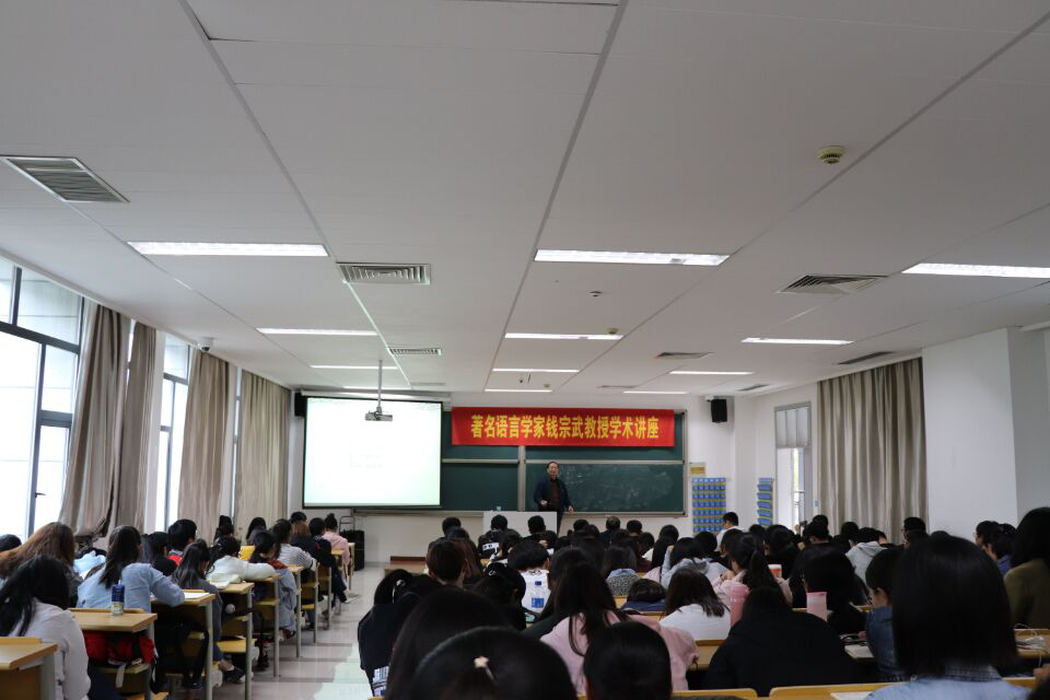 10月20日下午A1201,扬州大学博士生导师,汉语言文字学重点学科带头人,著名语言学家钱宗武教授应邀作《汉语史研究哲学思考》学术讲座,英国正版365官方网站师生200余人听讲。